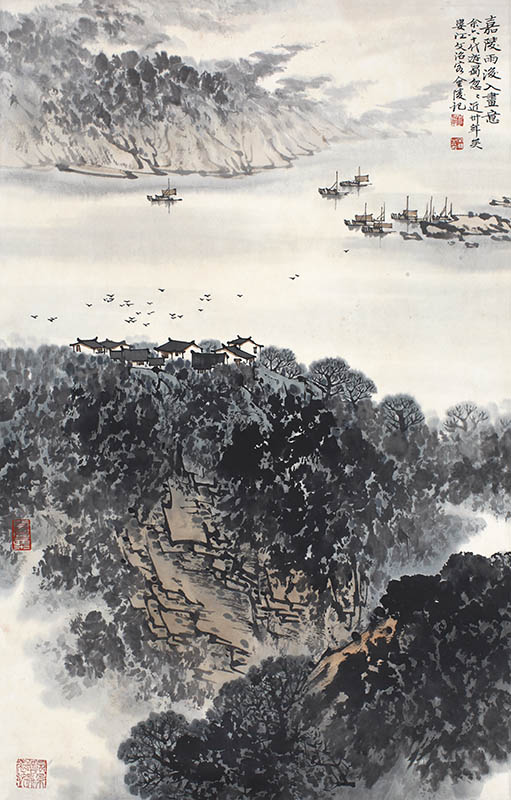 款识:嘉陵雨后入画意,余六十年代游蜀勿勿近三十年矣,娄江文治客金陵记
