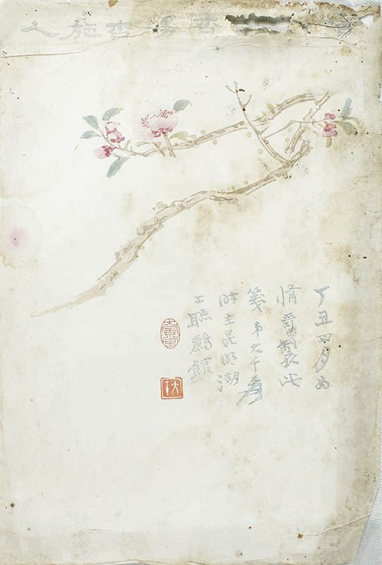 款识:杏汤施人丁丑四月为修哥制此笺弟大千爰时主昆明湖上听鹧馆