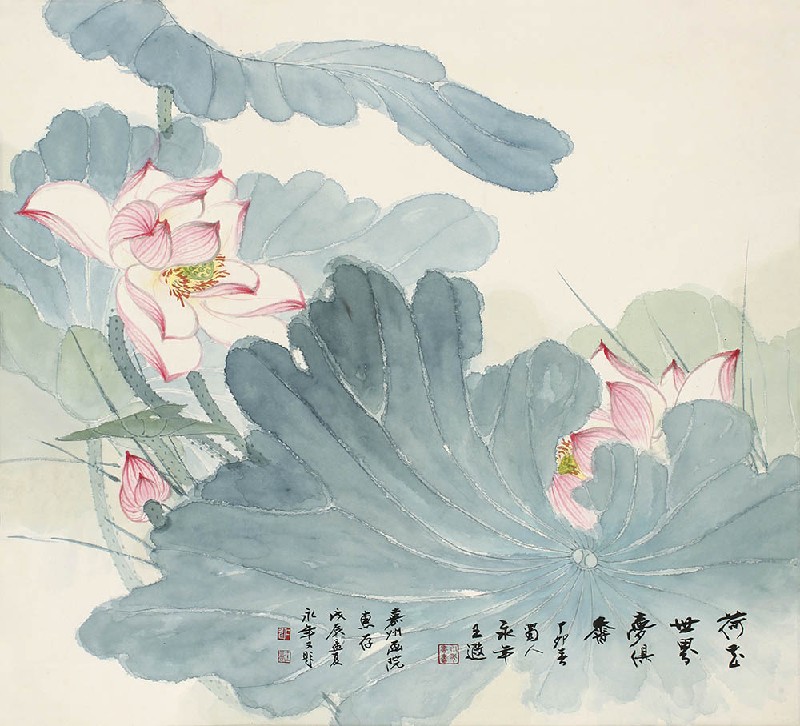 款识:荷花世界梦俱香。丁卯春蜀人永年王遐。嘉州画院惠存,戊辰孟夏永年又题。