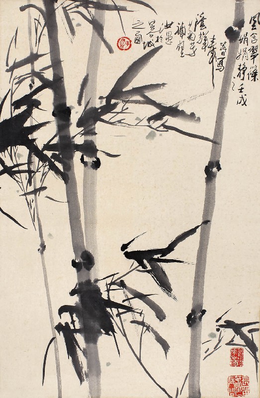 款识:风含翠条娟娟静。壬戌之春奉阴辉菊芳补壁,汝愚于蓉城之西。