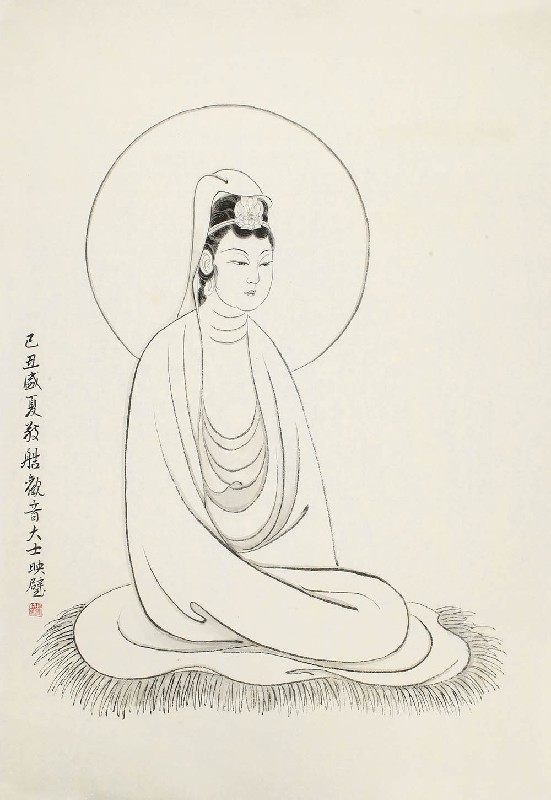 款识:己丑盛夏敬艁观音大士,映璧。