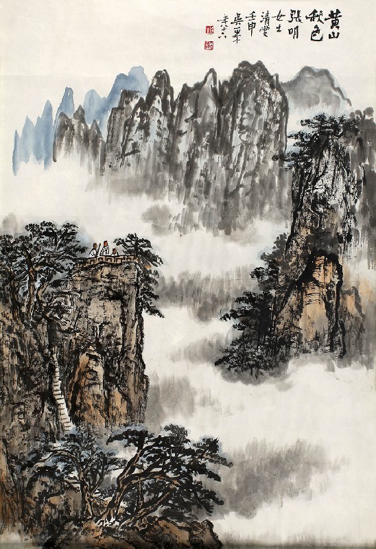 款识:黄山秋色。张明女士清赏,壬申吴一峰年八十六。