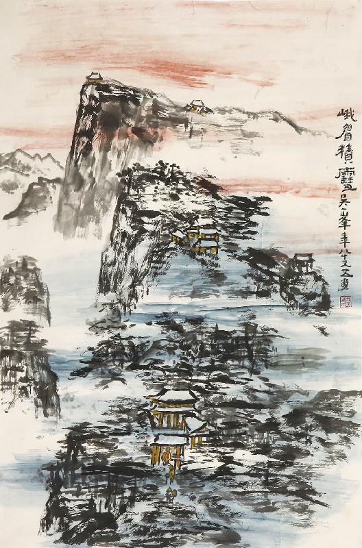 款识:峨眉积雪。吴一峰年八十又五画。