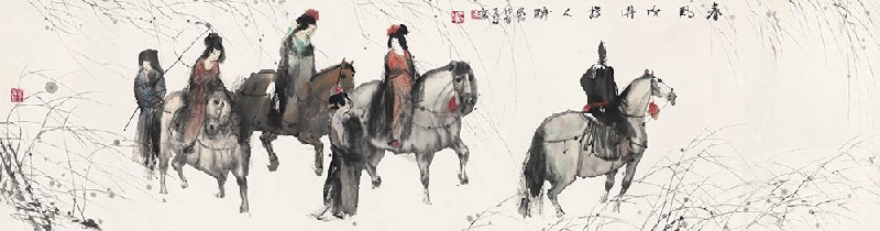 简介:彭先诚(b.1941):四川成都人。四川省诗书画院国家一级美术师,中国美术家协会会员,四川美术家协会理事。擅长没骨点染破墨法,善画鞍马人物。作画重于直觉,注重偶然的水墨关系,其作品笔精墨妙,格调清新,风格独异。