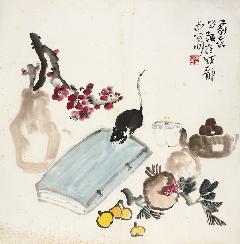 款识:寿岳写趣于成都西寓。