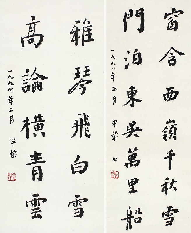 款识:1、一九九七年二月,半黎。2、一九九八年五月,半黎书。