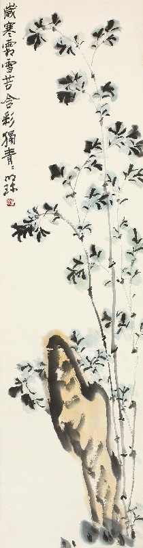 款识:岁寒霜雪苦,含彩独青青。明珍。