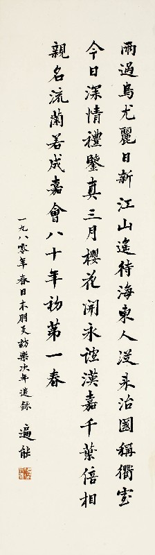 备注:雨过乌尤丽日新,江山遥待海东人。从来治国称衢室,今日深情礼鉴真。三月樱花开永谊,漠嘉千叶倍相亲。名流兰若成嘉会,八十年初第一春。