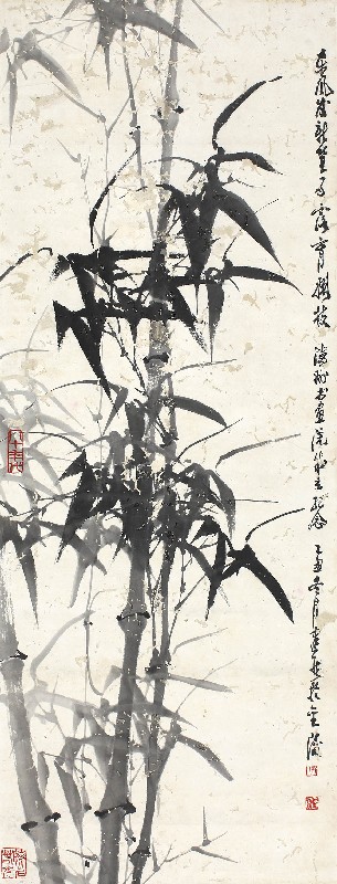 款识:东风发新篁,雨霞育嫩枝。泸州书画院成立纪念,乙丑冬月建侯于金陵。