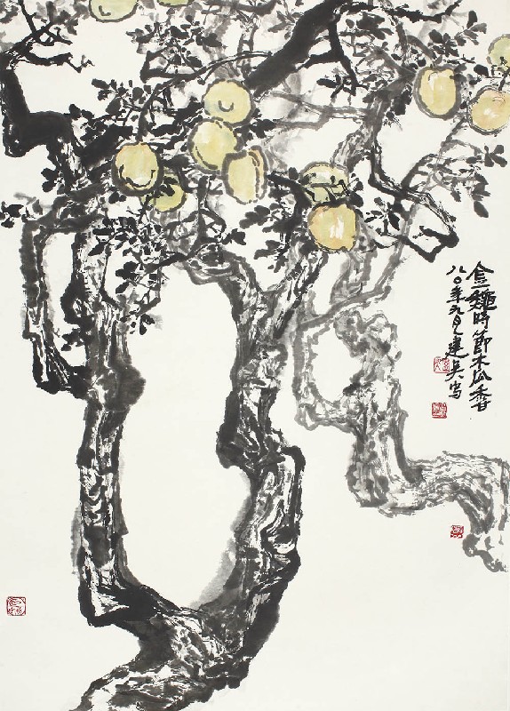 款识:金秋时节木瓜香。八零年九月,建吴写。