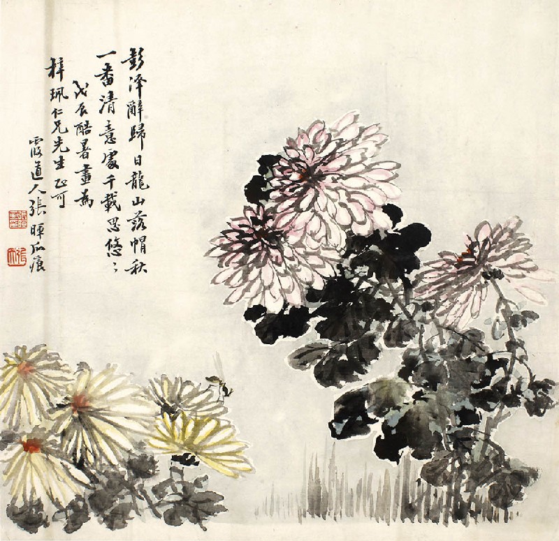款识:彭泽辞归日,龙山落帽秋。一番清意处,千载思悠悠。戊辰酷暑画为梓珮仁兄先生正可,霞道人张晖爪痕。