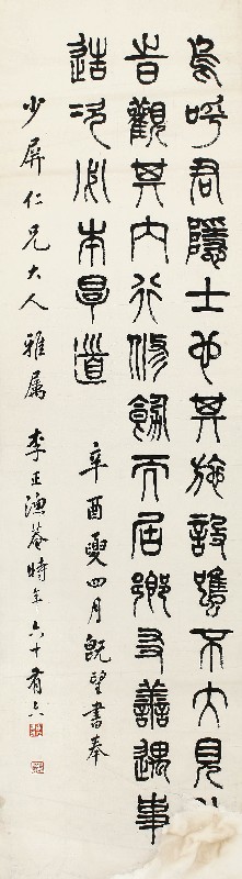 款识:辛酉夏四月既望书奉少屏仁兄大人雅嘱,李正渔庵时年六十有六。