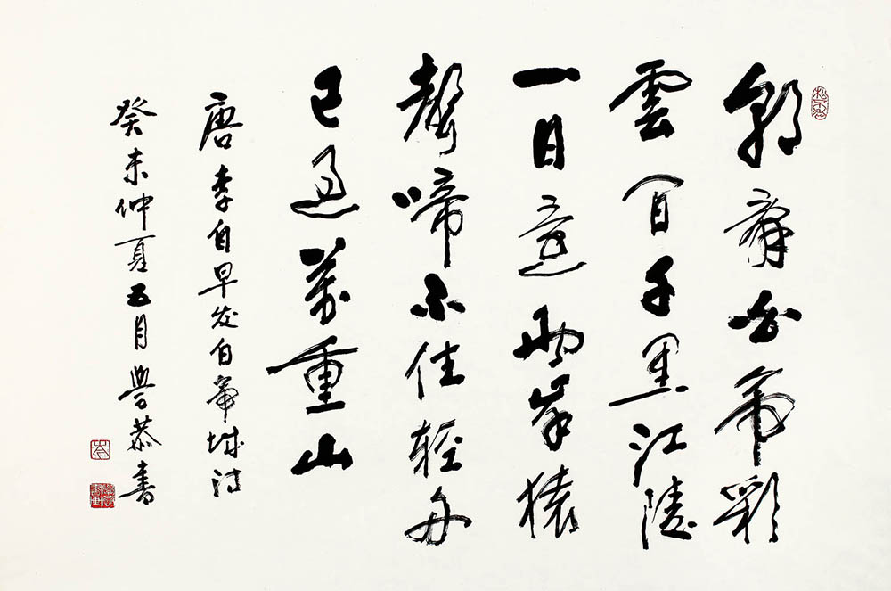 款识:唐李白《早发白帝城》诗,癸未仲夏五月,学恭书。