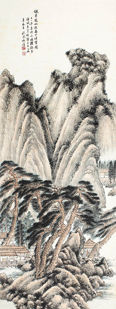款识:仿黄鹤山樵春山读书图。十二年前作,今补题款于锦城东窑竹窗之下。乙丑孟夏月,临风谢渔。