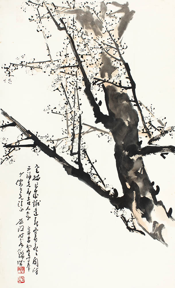 款识:老梅已成铁,逢春又着花,花开皆五福,先到吉人家。辛未初冬写奉少儒老兄清正,道熙时客锦城。