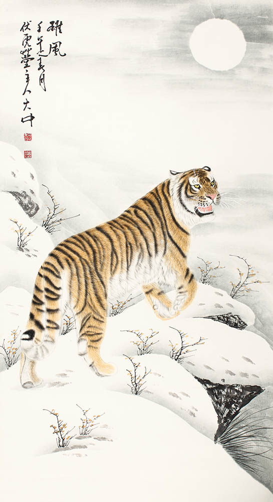 款识:雄风。壬午之春月,伏虎草堂主人大中。