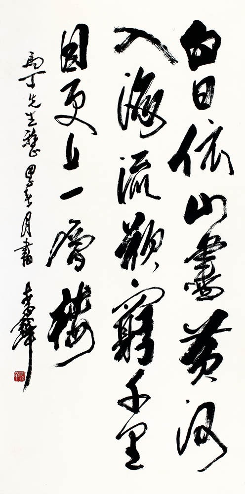 译文:白日依山尽,黄河入海流。欲穷千里目,更上一层楼。