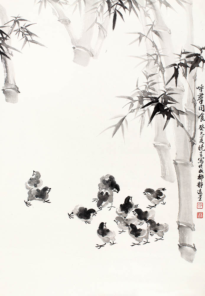 款识:呼群同食。癸巳夏晓音写于成都静远堂。