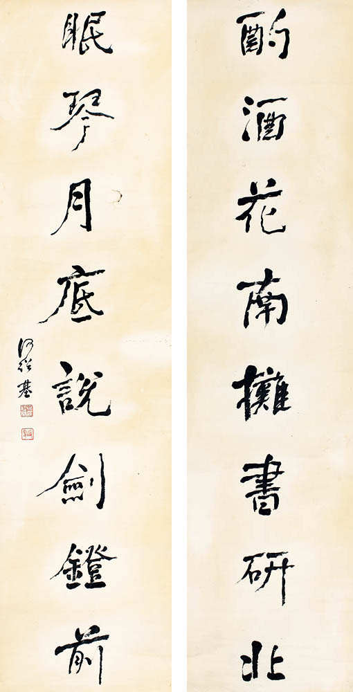 译文:酌酒花南摊书研北,眠琴月底说剑灯前。