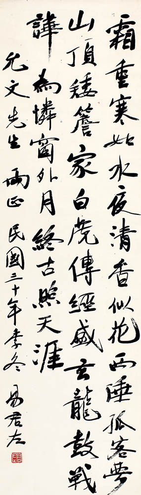 简介:易君左(1899-1972):湖南省汉寿县人,北京大学文学士、日本早稻田大学硕士。家学渊源,才高资绝,文、诗、书、画无不精工,被称为“三湘才子”。留学回国后,长年在国民党军政界擅从报业文化,积极参加抗日活动;1949年底去台湾,嗣后,辗转香港、台湾,在大学任教,兼任中华诗社社长,历经世变。易君左成名早,享名久,成就高。文著60余种,数千万言,诗词、游记、传记、随笔、剧本广涉博猎,信手天成,书画法古出新,卓尔不凡,为文坛奇人。