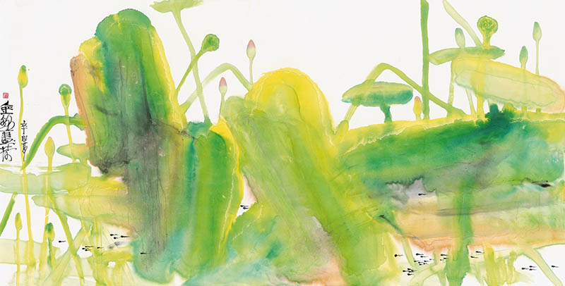 款识:辛卯夏金铭画荷