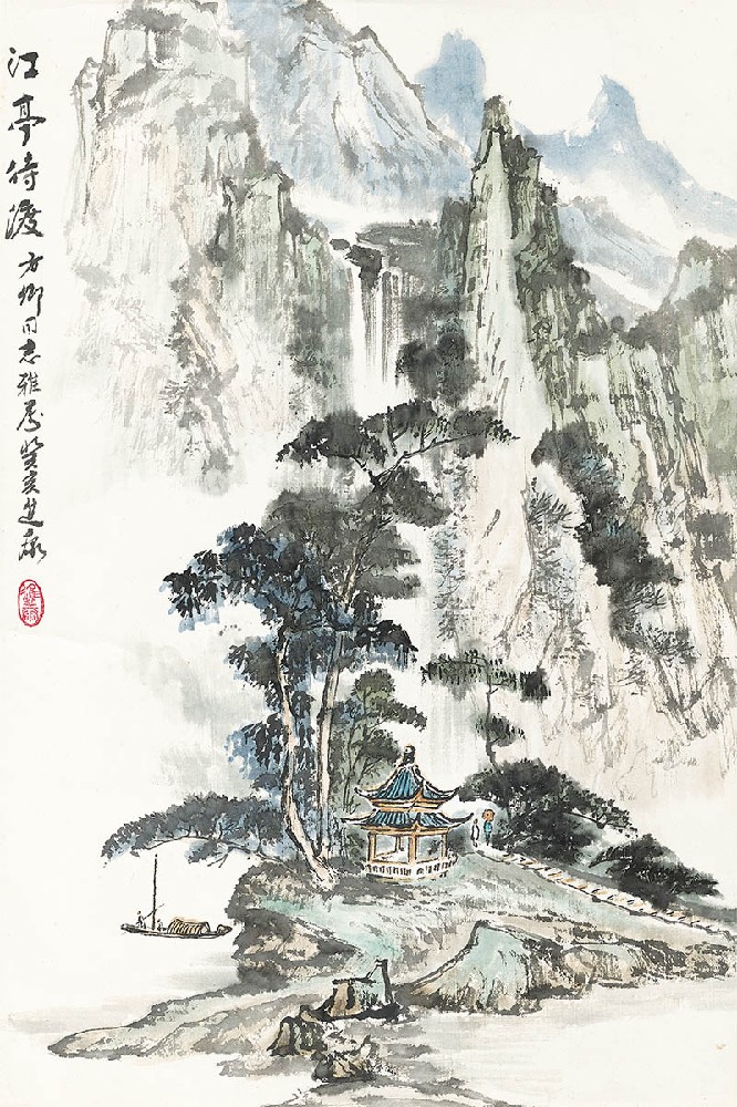 款识:江亭待渡,方郷同志雅居 癸亥 进康