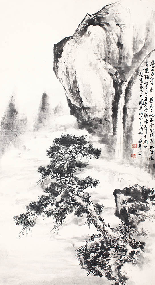 款识:庐山为余少年游息之地,至今回忆寻幽访胜之乐,犹如置身五老香炉诸峰之间也。癸亥夏六月周君适作于成都,时年八十。