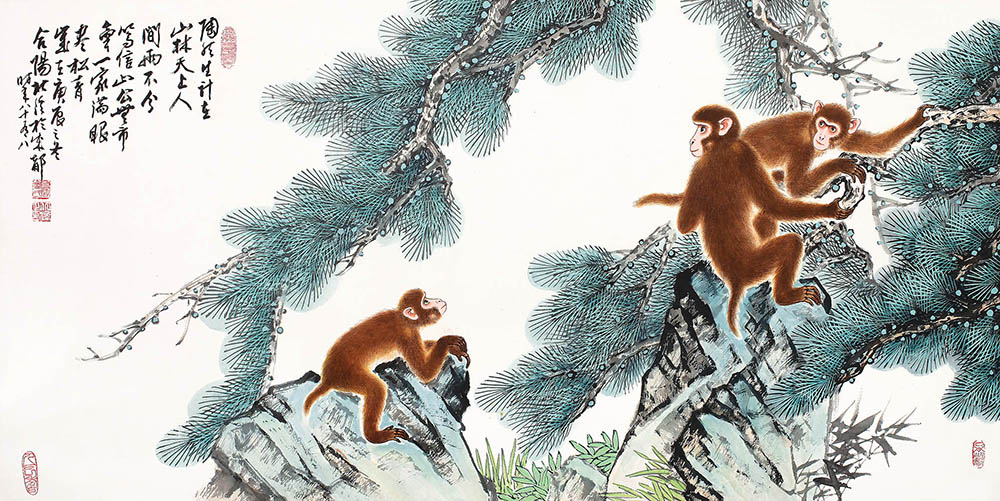 钤印:合阳周氏;北溪之印;荡胸生层云;人长寿;月满山谷