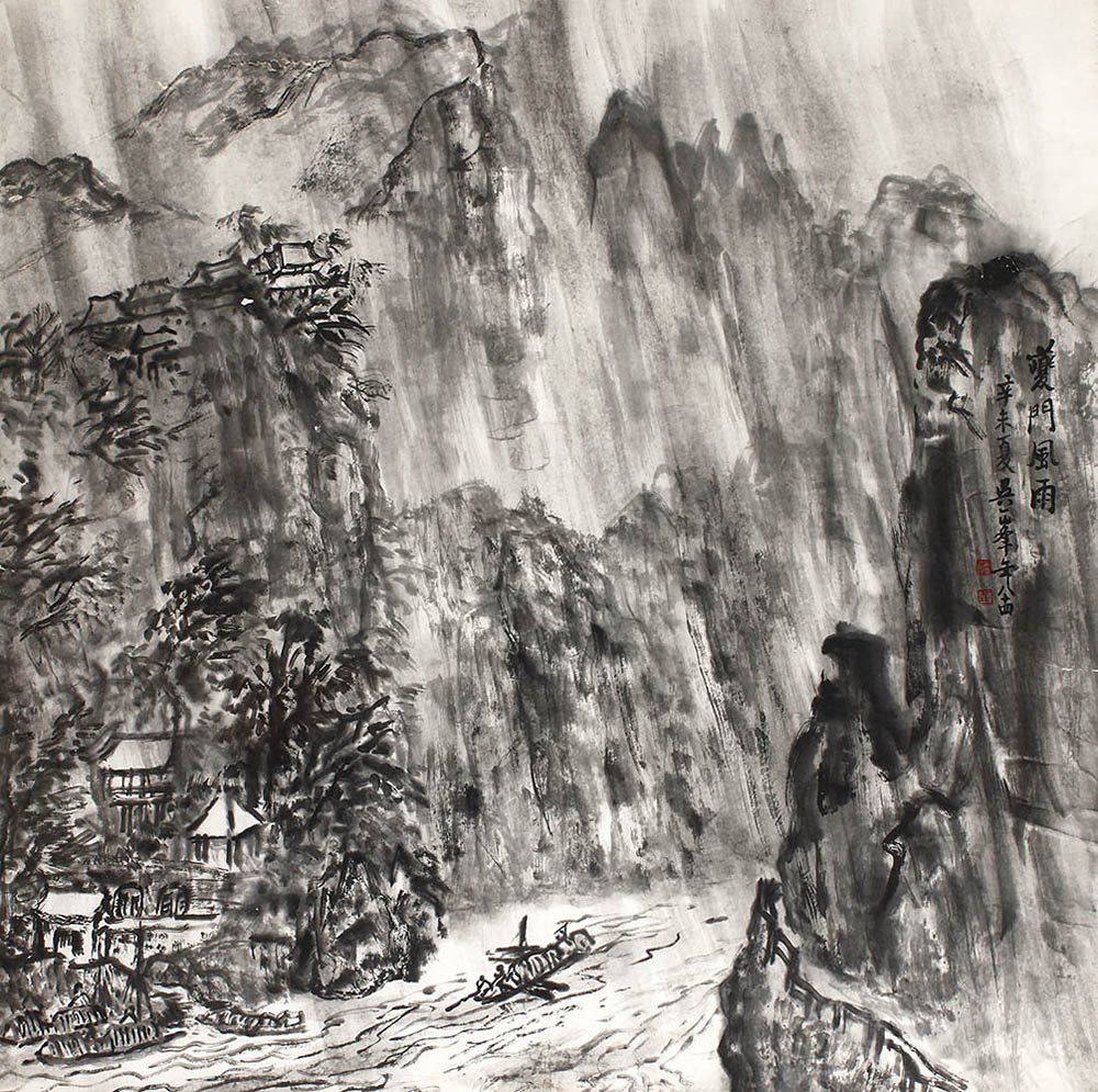 款识:夔门风雨。辛未夏吴一峰年八十四。