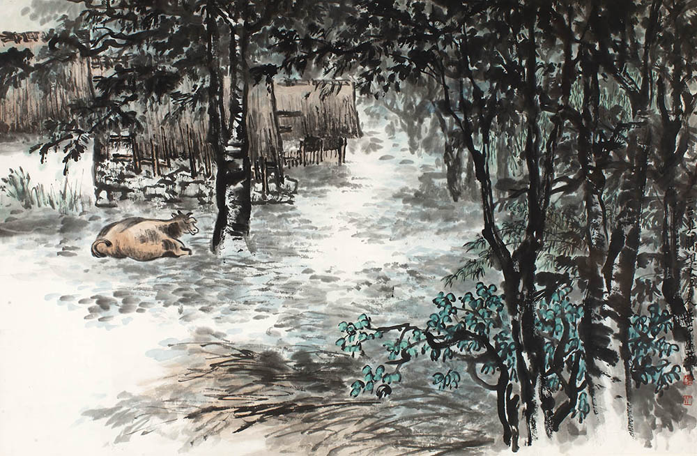 款识:三台真胜坝。乙丑夏吴一峰画。