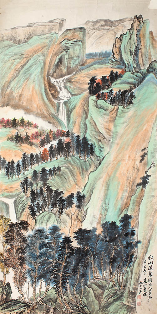 款识:秋山流泉。拟元人笔意,辛巳春正,建初萧朴九十一矣。
