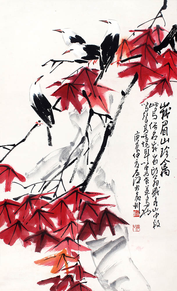 款识:峨眉山珍禽。此鸟俗名峨山白头翁,盛产山中段,鸣声高吭悦耳,以虫为食,益鸟也。庚辰仲夏道熙于嘉州。