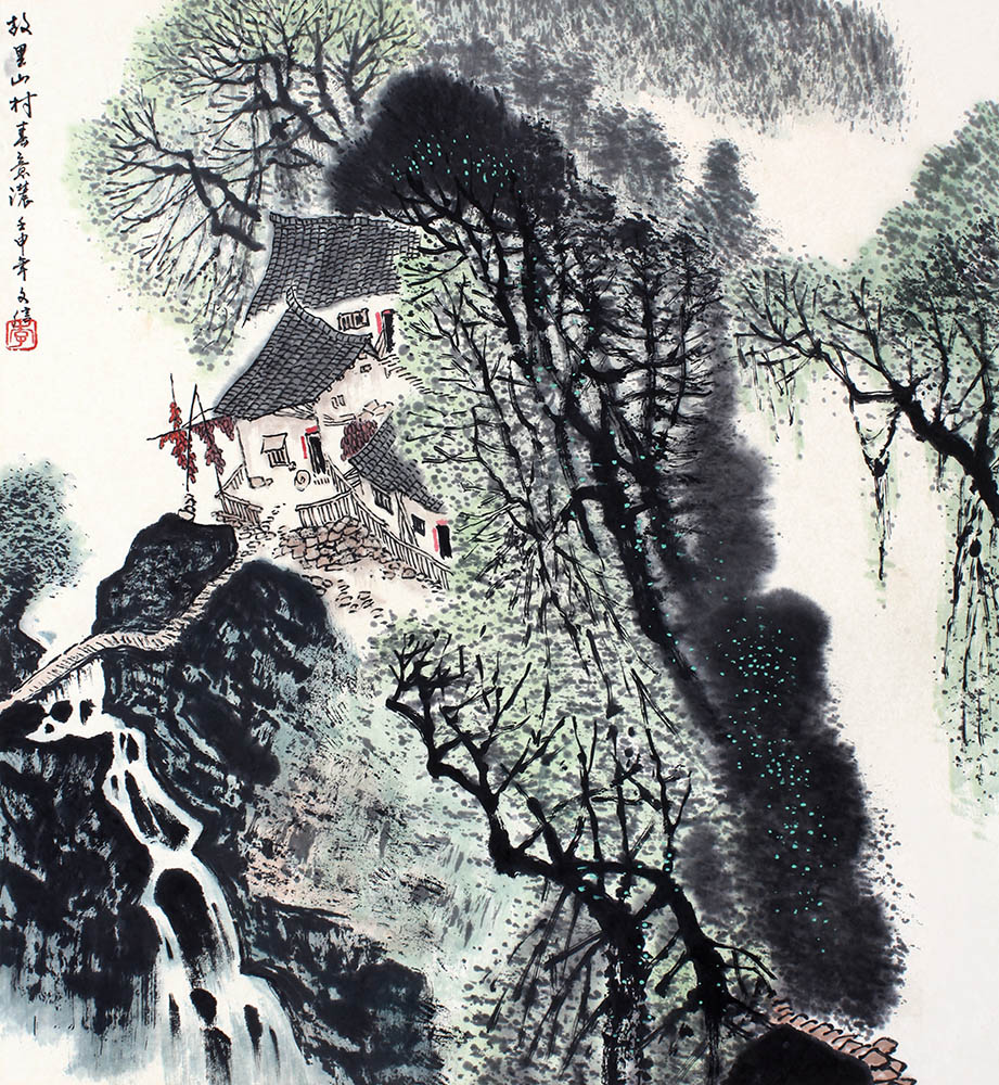款识:故里山村春意浓。壬申年文信。