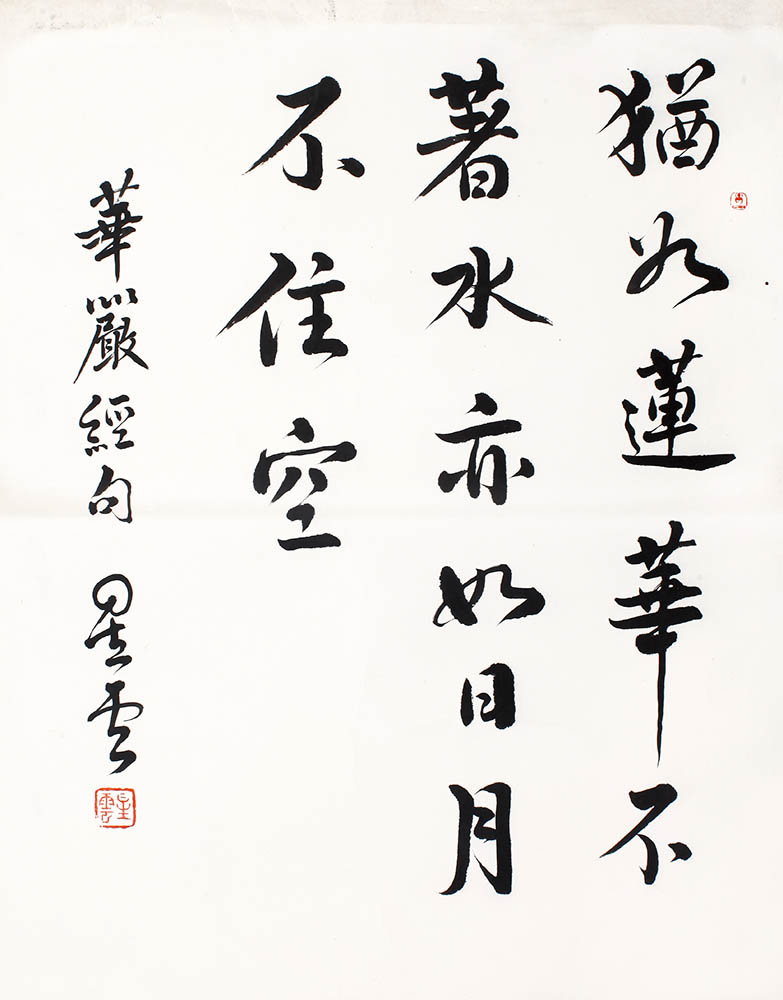 译文:犹如莲华不著水,亦如日月不住空。
