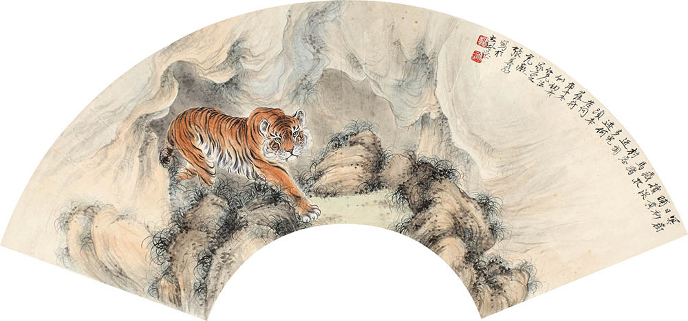 简介:张善孖(1882-1940):名泽,字善孖(一作善子,又作善之),号虎痴,四川内江人。曾任上海美专教授。与八弟张爰(大千)同寓上海,领袖风雅,又二难之目。善画山水、花鸟、鱼虫、走兽、尤精画虎。画有十二金钗图,写虎各种形态,各摘西厢记词句题之,以寓美人猛虎之意。抗日战争后,游美,举行画展募捐,返国卒于重庆,年五十九。