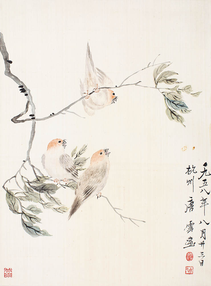 款识:一九五八年八月廿三日,杭州唐云画。